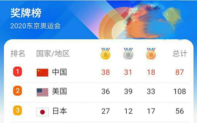 ▲2020东京奥运奖牌榜(图片来源:网络)